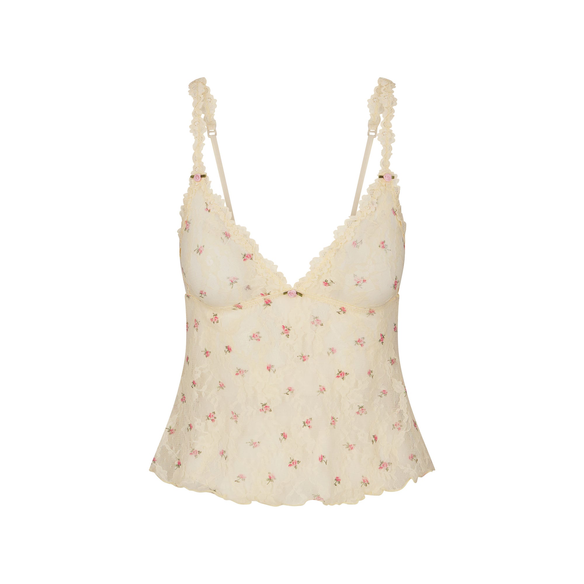 STRETCH LACE TRIANGLE CAMI AND SHORT SET | BUTTER ROSEBUD PRINT