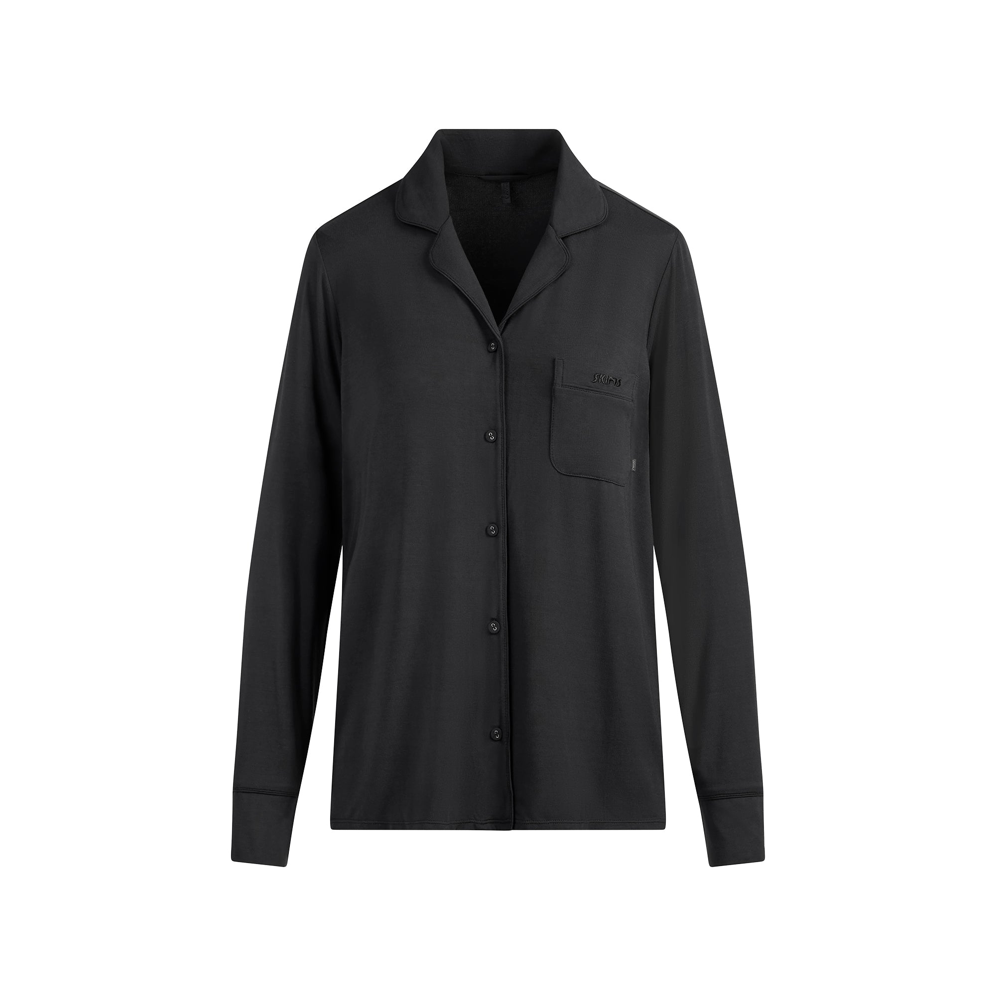 SKIMS SLEEP LONG SLEEVE BUTTON UP SET | ONYX