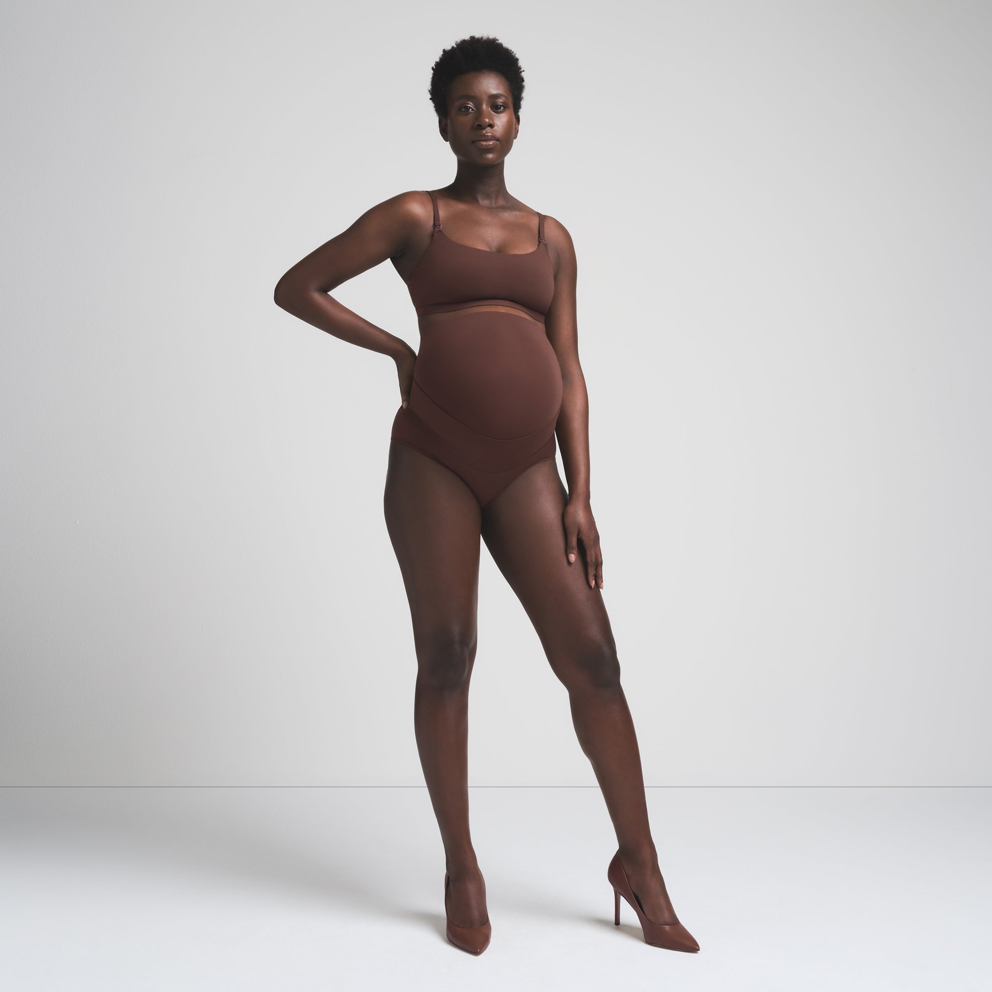 A high-waist maternity brief with a soft, supportive elastic waistband and comfortable non-compressive core for your growing baby bump. Features a flexible foldover band for support, an 100% cotton gusset, and full brief back coverage. Fits true to size.