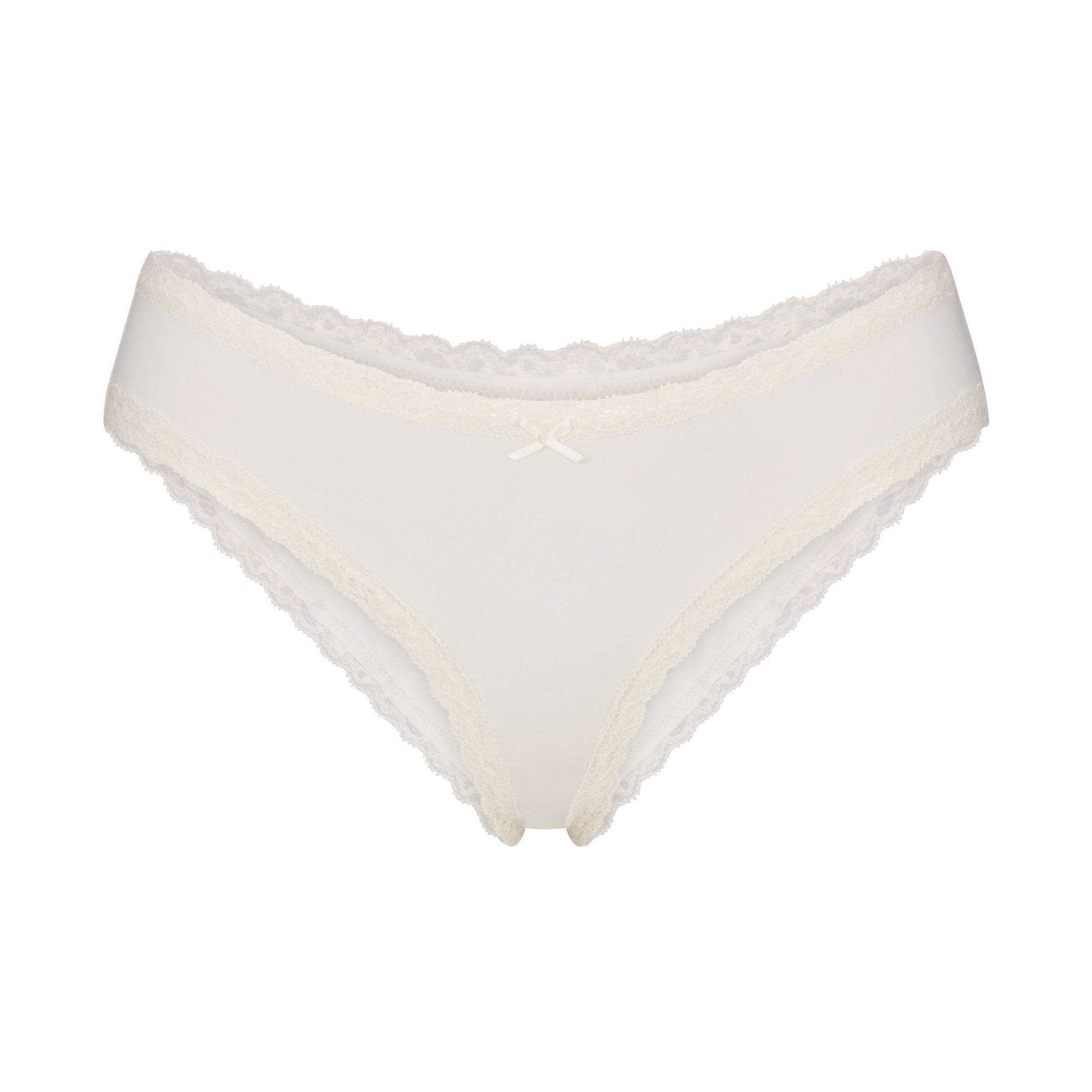 Cute and confident underneath it all. Designed in a lightweight, soft cotton, this brief has just the right amount of stretch for next-level comfort. Comes adorned with sweet details like tonal lace trim and a center bow. Features a 100% cotton gusset. Fits true to size.
