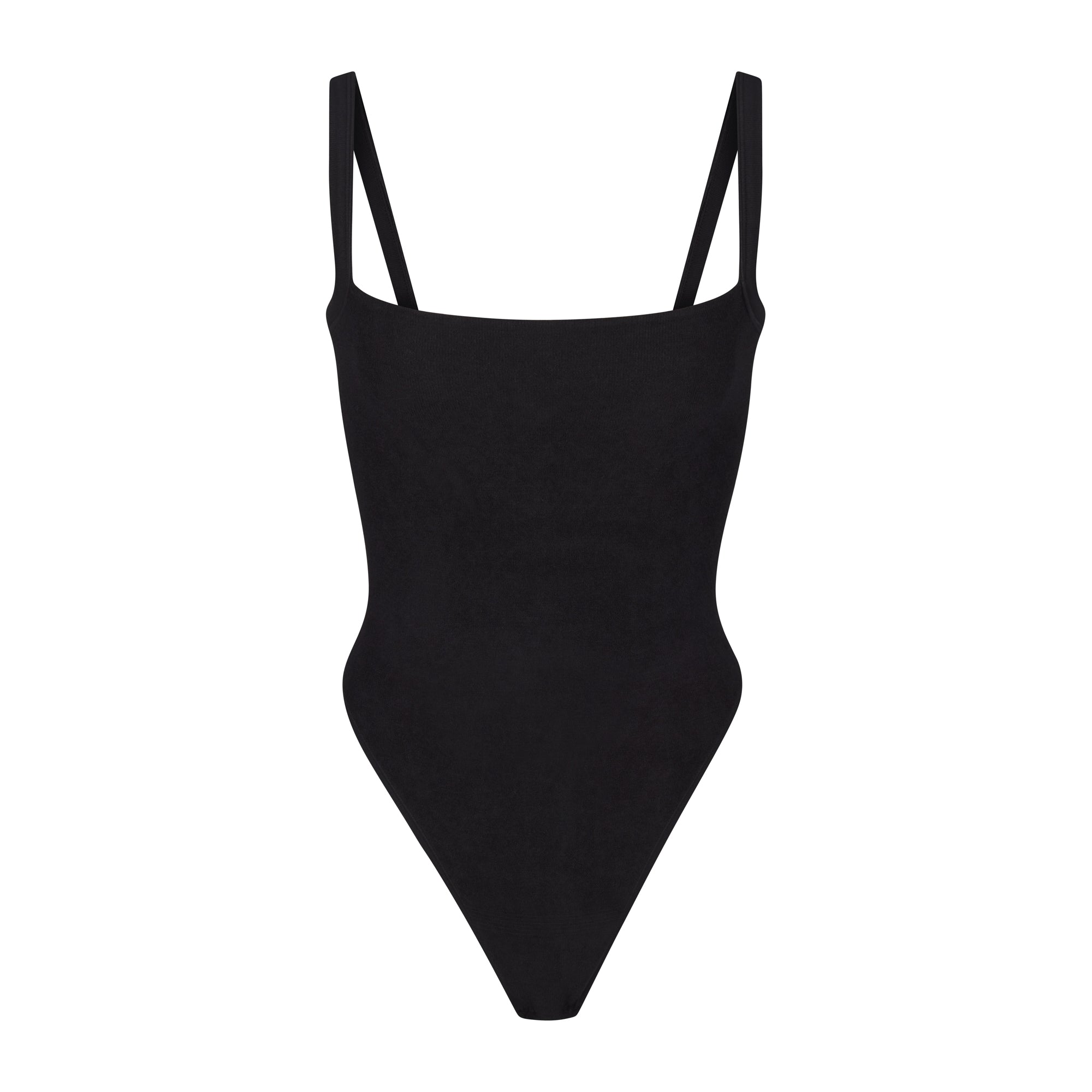 This scoop neck bodysuit with the softest, perfectly stretchy terry fabric is the summertime staple you’ll live in. Features non-adjustable straps, a shelf bra with jersey lining, a thong back with straps, and a cotton gusset liner. Look effortlessly put together by pairing with our Terry bottoms and hoodies. Fits true to size.