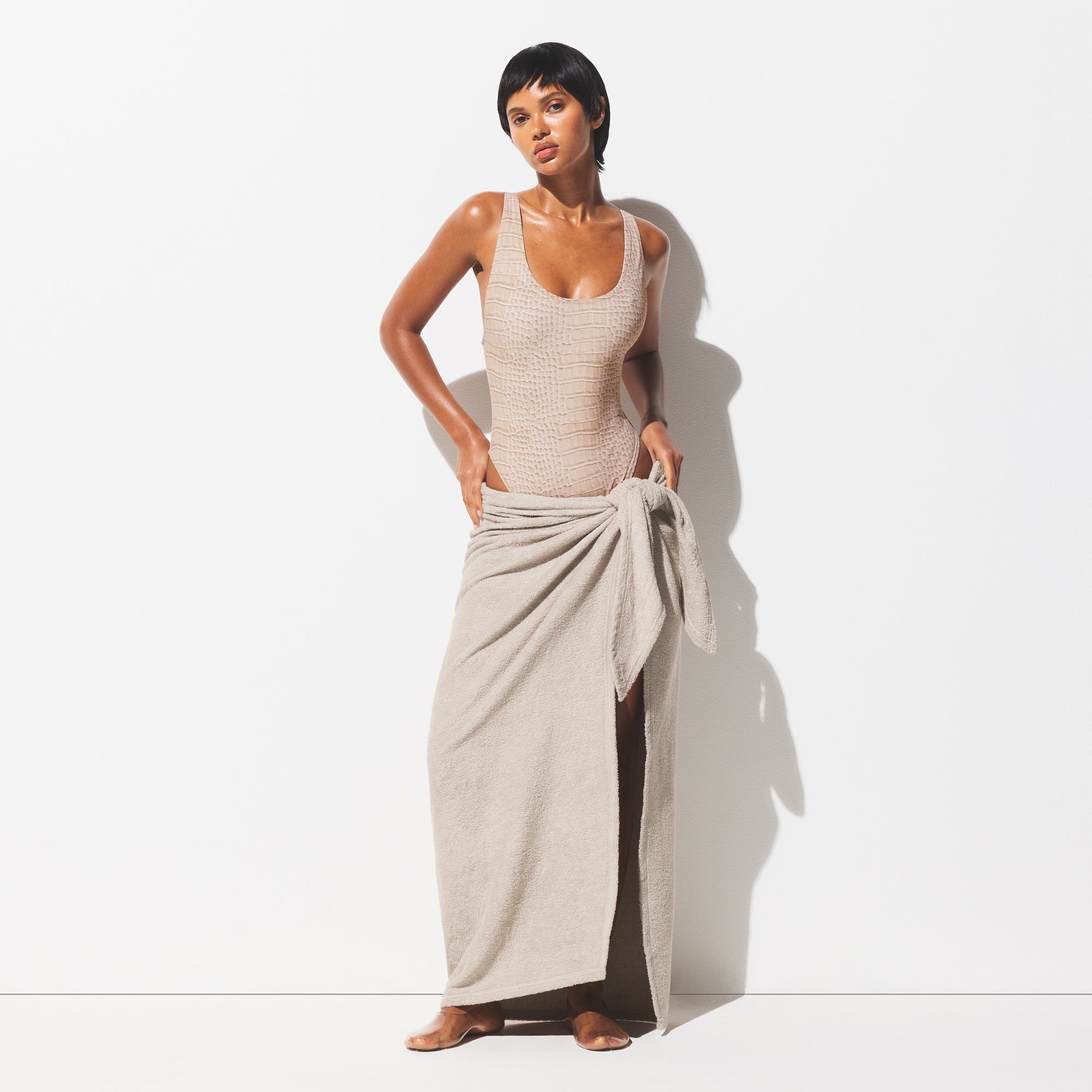 The sexiest sarong. Flattering and stylish in the softest midweight terry, this long sarong is the finishing touch to a stunning SKIMS Swim look. Features a self-tie for adjustability and fits true to size.