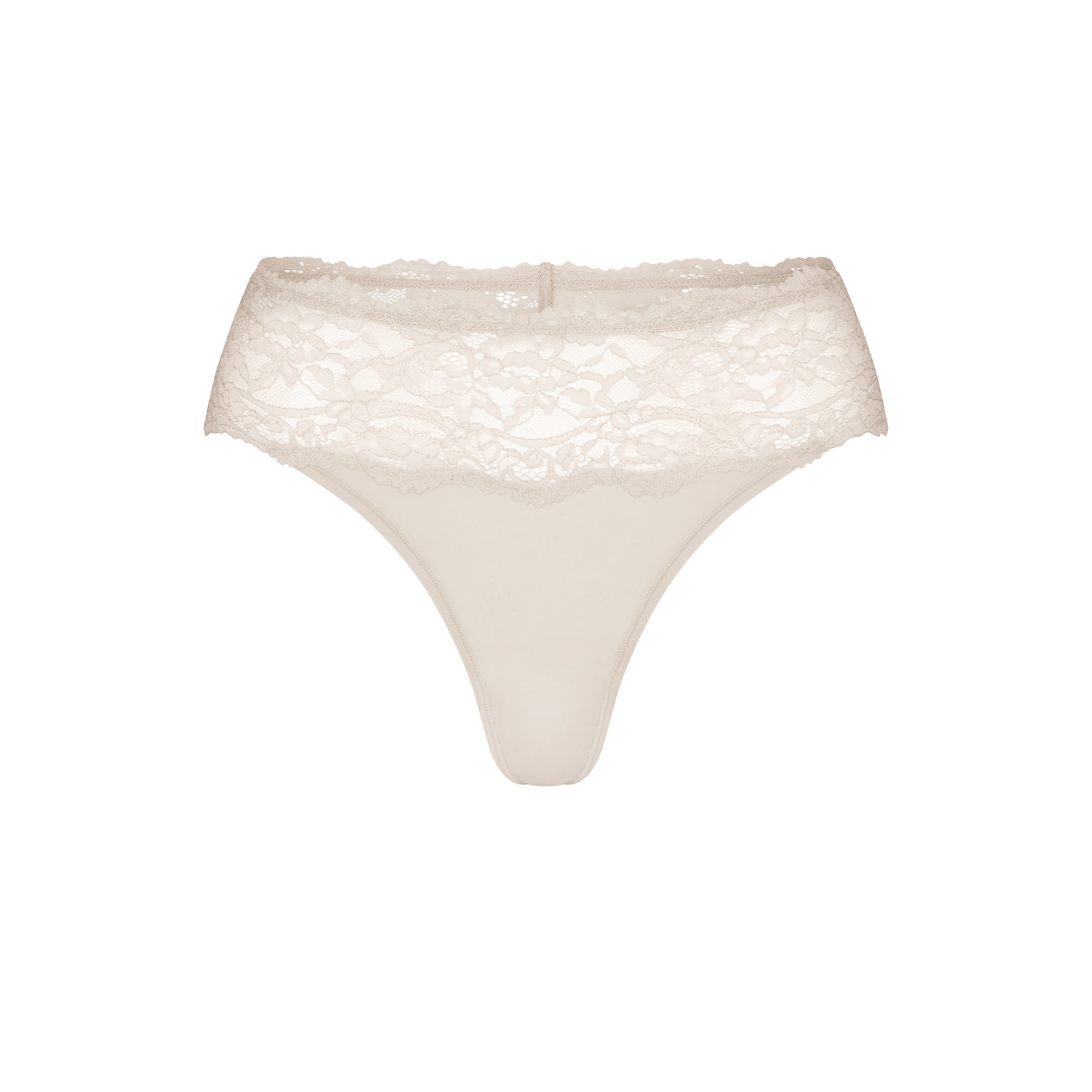 Sexy beyond compare. This mid-rise panty is adorned with feminine lace along the waist. Made with our signature, buttery-soft fabric that stretches to twice its size without losing shape. Features minimum coverage and a 100% cotton gusset. Fits true to size.