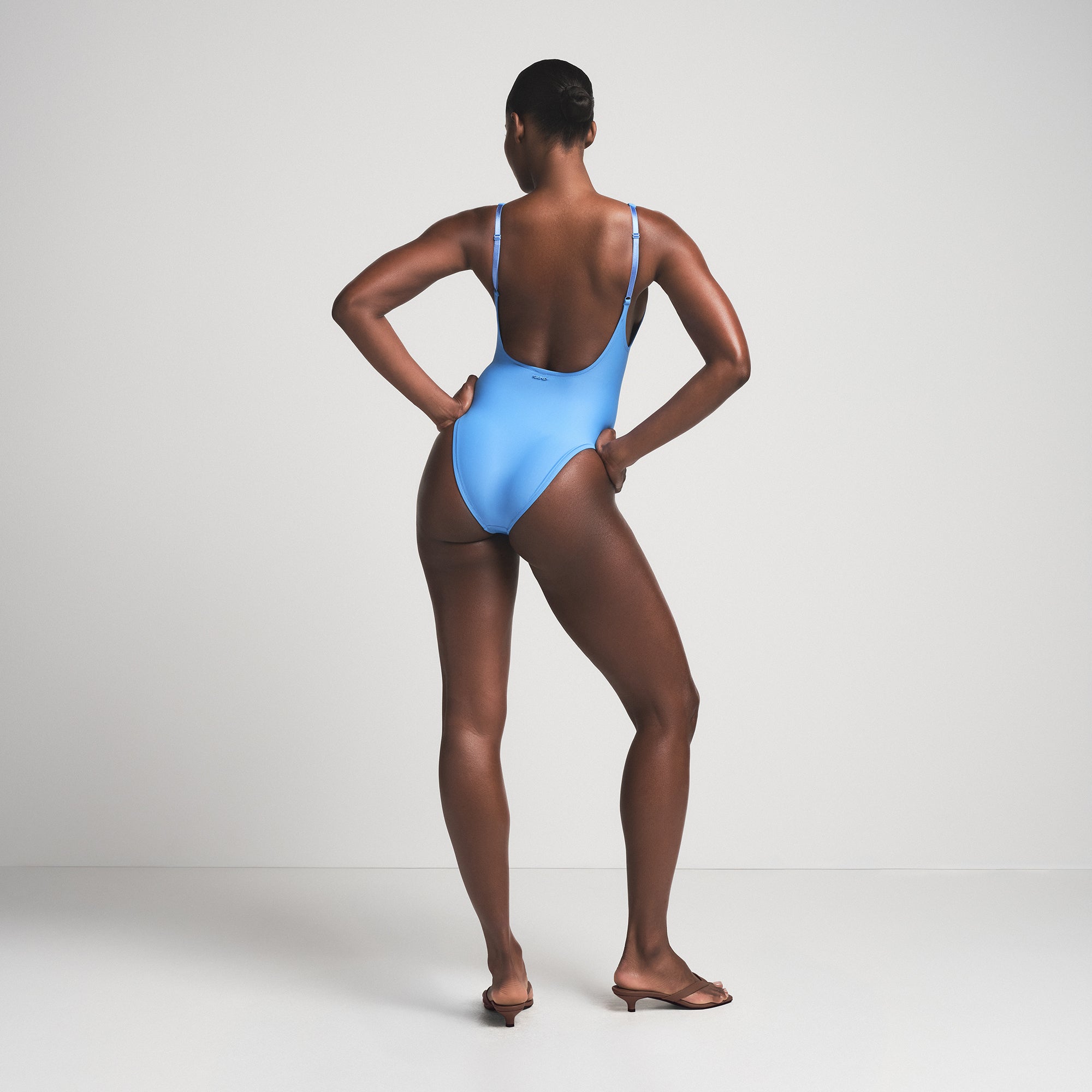 Own swim season. Made with our game-changing swim fabric, this sexy, best-selling one piece features a low back and medium coverage. Features a scoop neck silhouette, adjustable straps, and a SKIMS logo detail at the center back. Fits true to size.