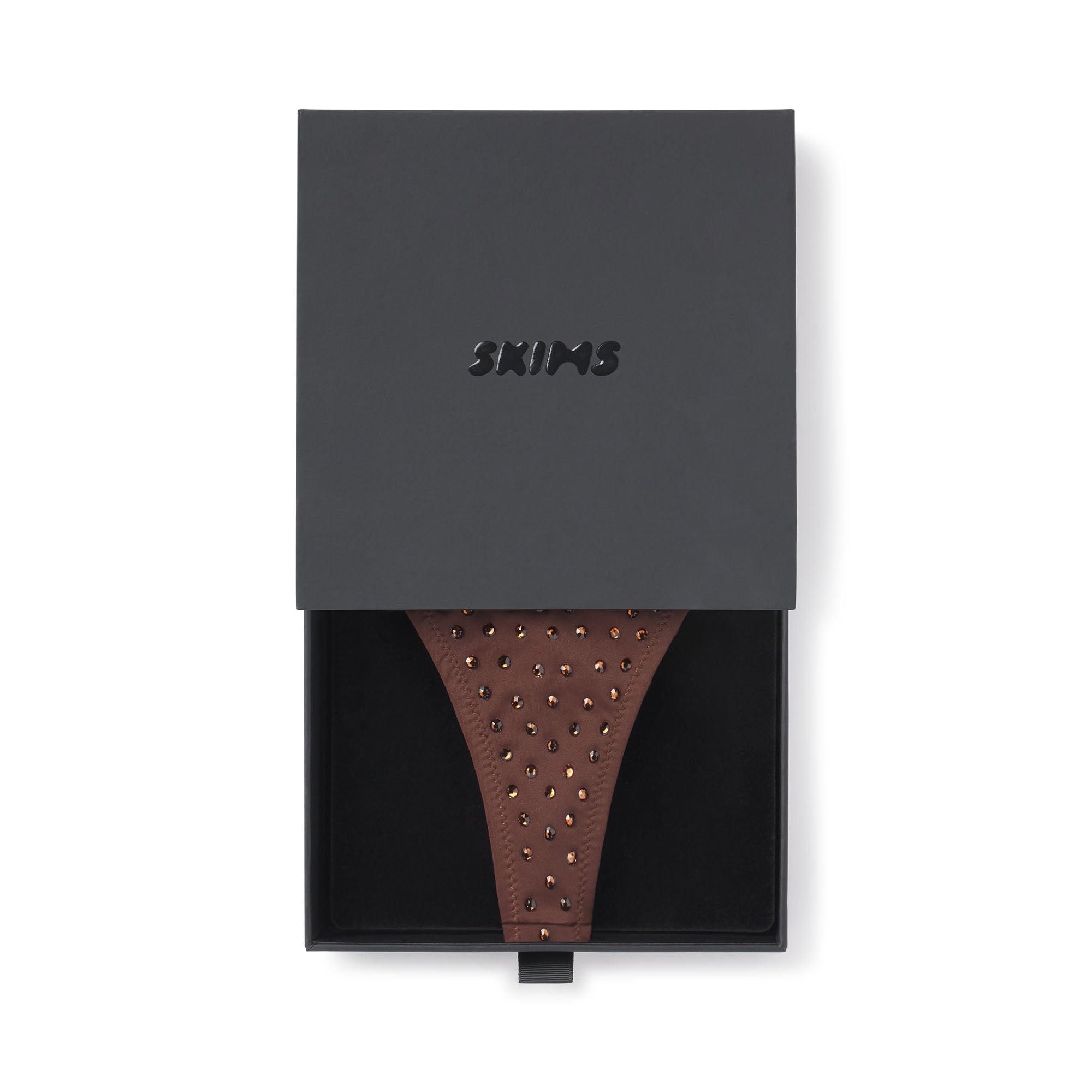Celebrate yourself and your sexiest nights with this stunning, crystal-studded thong. This design piece is embellished with crystals from Swarovski?. Pair with the coordinating triangle bralette for a show-stopping look. Features 100% cotton gusset. Fits true to size. This luxe gift comes in elegant SKIMS packaging for easy gifting.