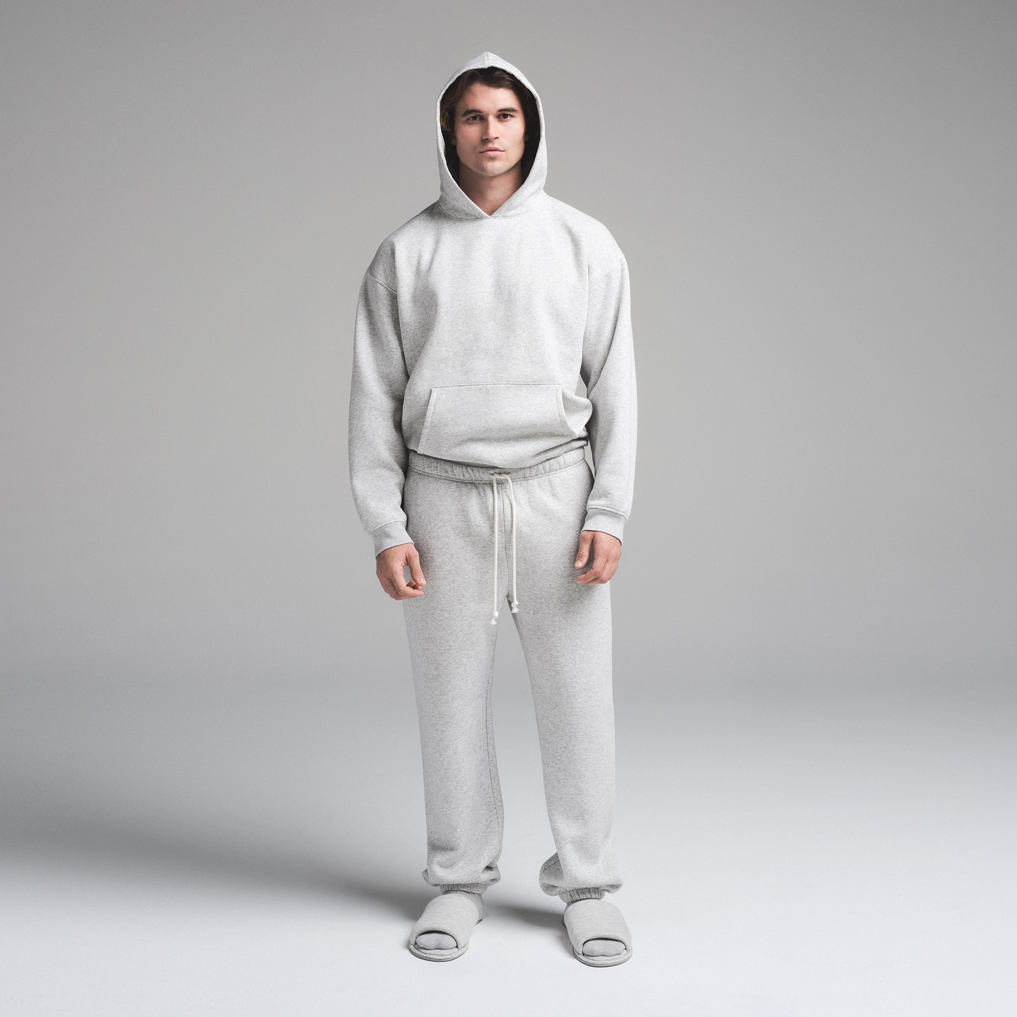 Our five-star hoodie, now in a relaxed style. This pullover is designed in our plush, cloud-like fleece for supreme comfort. Features a drawstring at the hood, front kangaroo pocket, and ribbed details at the cuff and hem. Fits true to size.