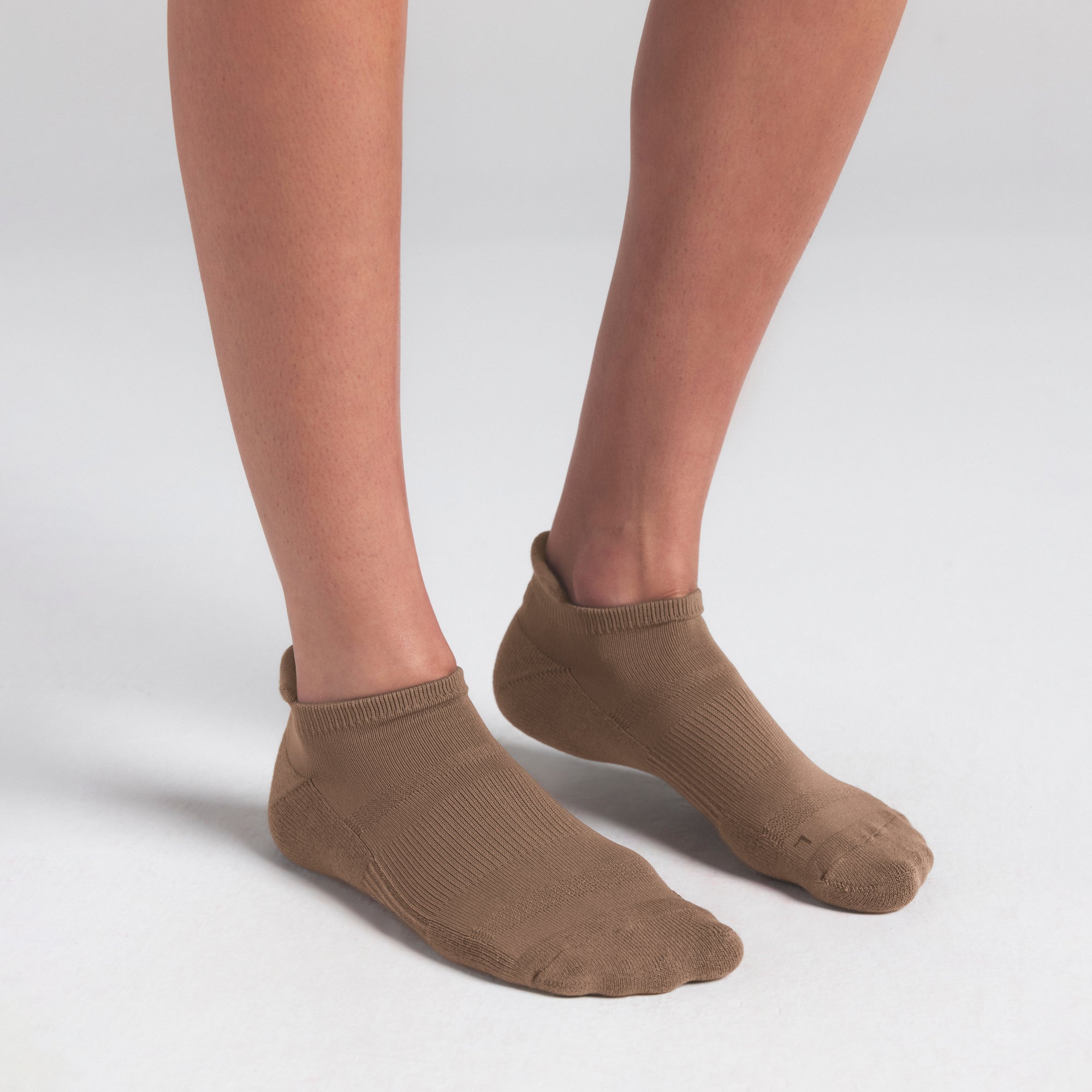 Step into everyday comfort. Designed in our breathable, knit fabric, these ankle-length knit socks feature full arch support and a padded foot bed. Complete with left and right toe construction for unmatched comfort. Fits true to size.