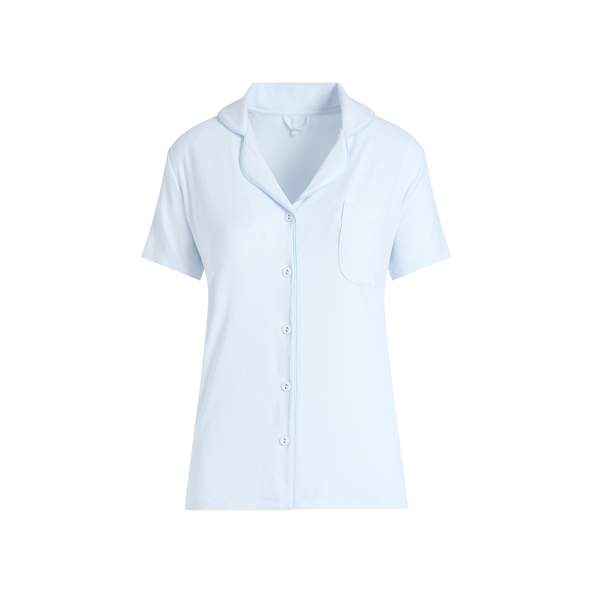 Meet the ultra-soft sleep set of your dreams. This classic button-up sleepwear top and fitted shorts have a classic look and ultra-comfortable feel. Features chest pocket details and interior drawstrings. Fits true to size.