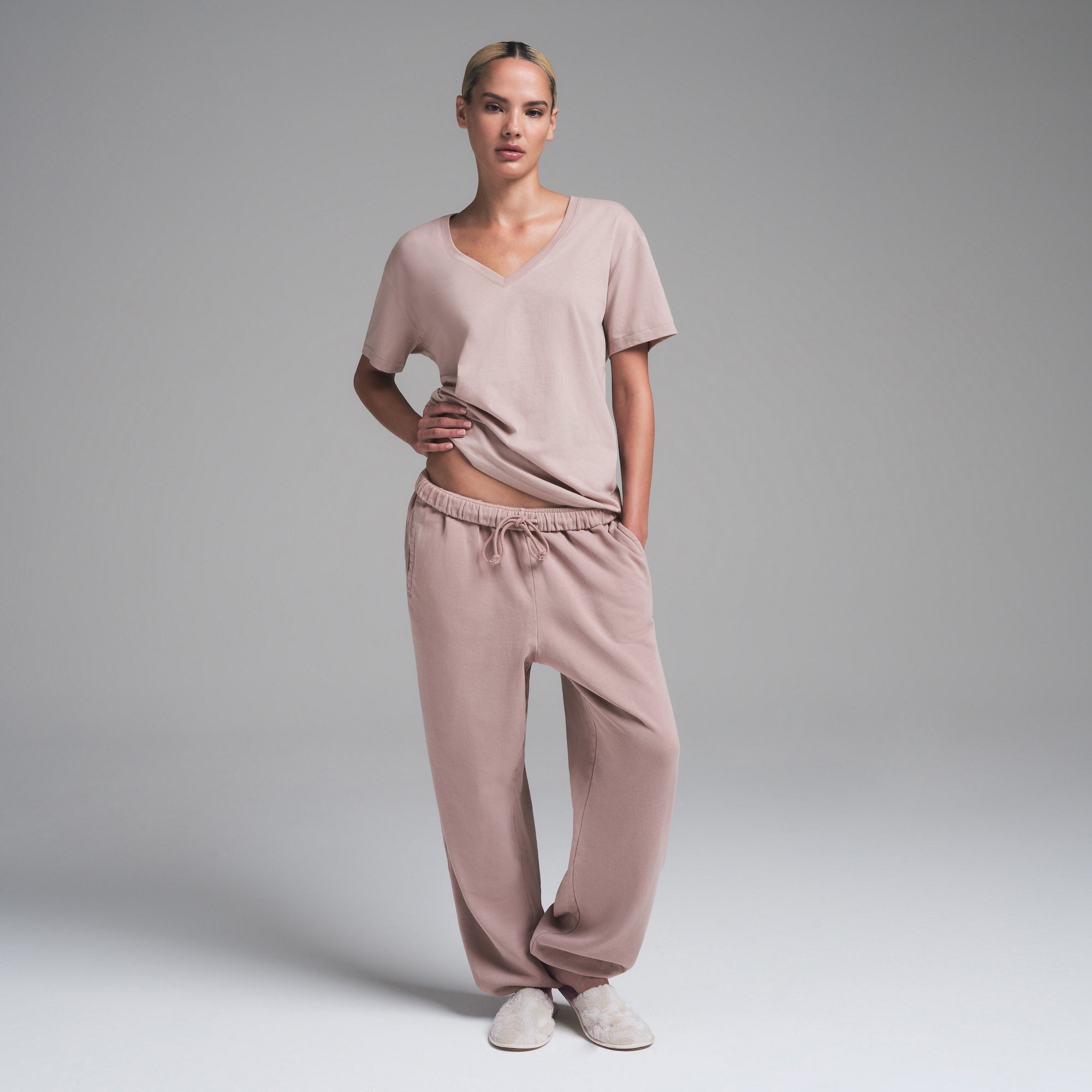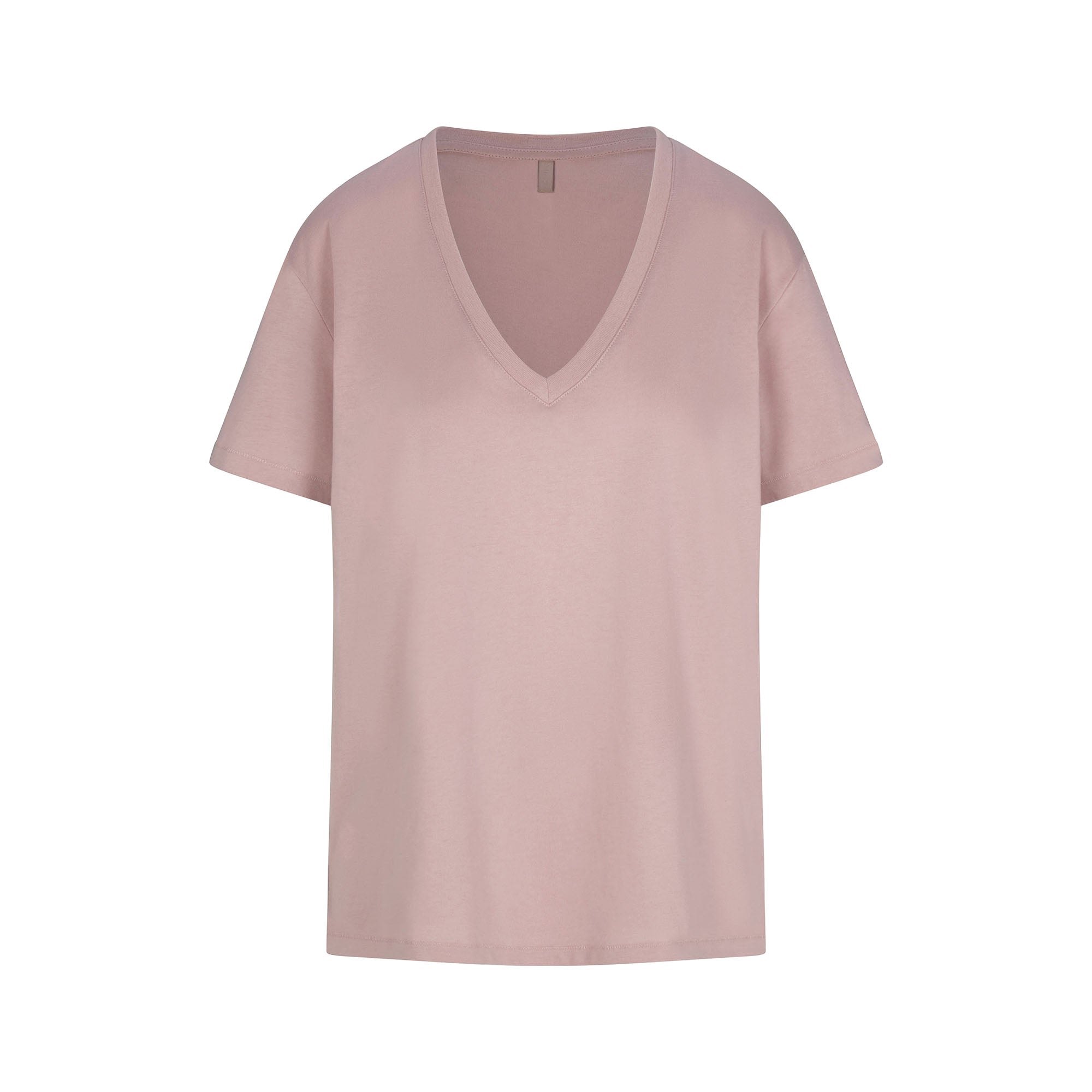 Your favorite new tee. Designed in our soft, breathable cotton, this v-neck short sleeve features a classic fit for comfortable, everyday wear. Dressed up or down, it’s the perfect base for any outfit. Features a neck band with ribbed detailing and a SKIMS logo label at the center back of the collar. Fits true to size. XXS-XL 2X-4X Length 26 1/2″ 27″