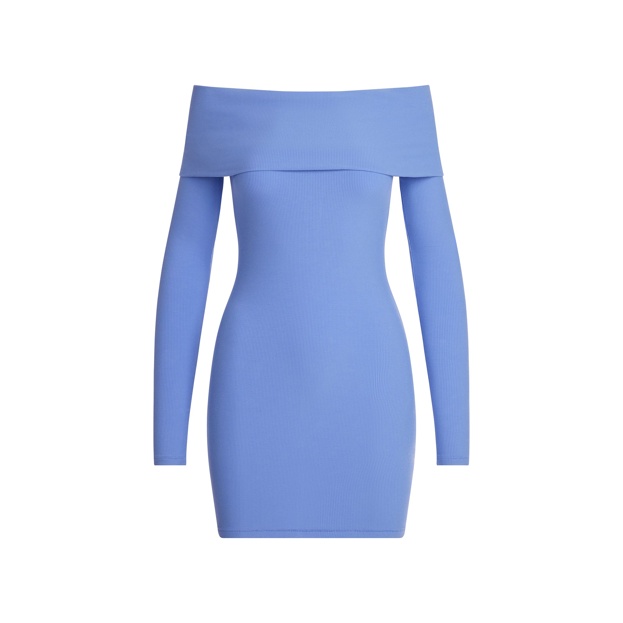 Soft Lounge does it again. Featuring a foldover, off-the-shoulder neckline, this long sleeve mini instantly makes you the best-dressed in the room. Made with our slinky modal rib for wear-everywhere comfort, this A-line style is finished with curve-enhancing ruching at the center back. Fits true to size.