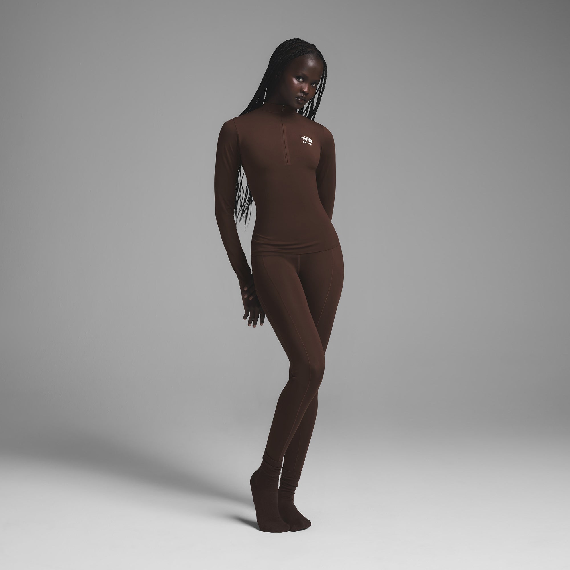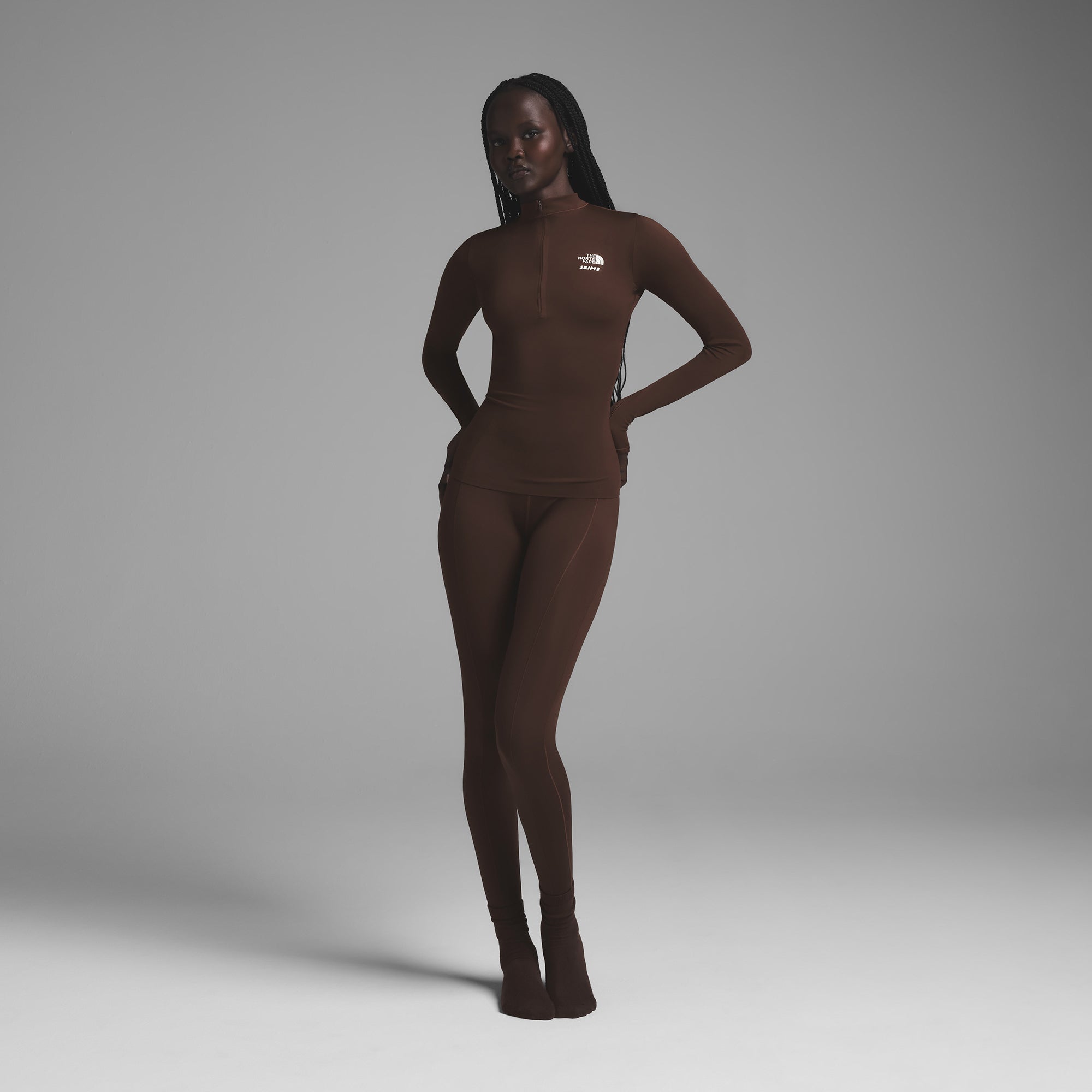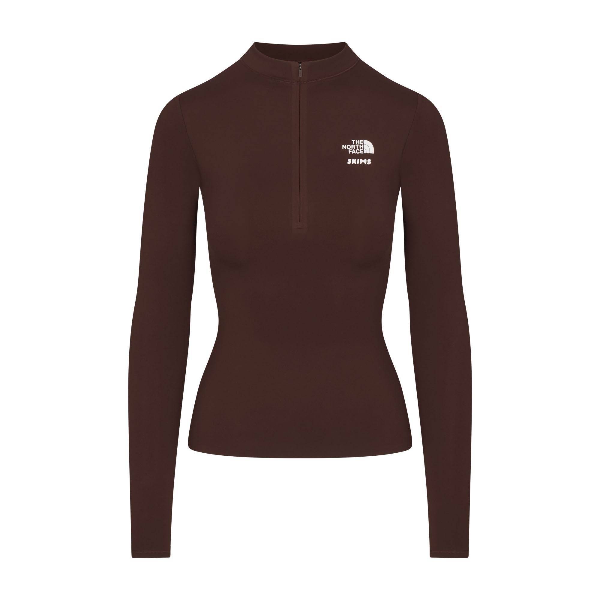 Your ski pass to the perfect base layer. SKIMS signature second-skin comfort and curve definition take shape in this quarter-zip that features body-contouring stitch lines and a concealed front zipper closure. The North Face’s FLASHDRY? technology keeps you dry and comfortable as you move or lounge. Part of the limited edition The North Face x SKIMS Collection. Shell Body: 40D, 238 G/M2 80% Recycled Polyester, 20% Elastane Lycra Adaptive with Flashdry?.