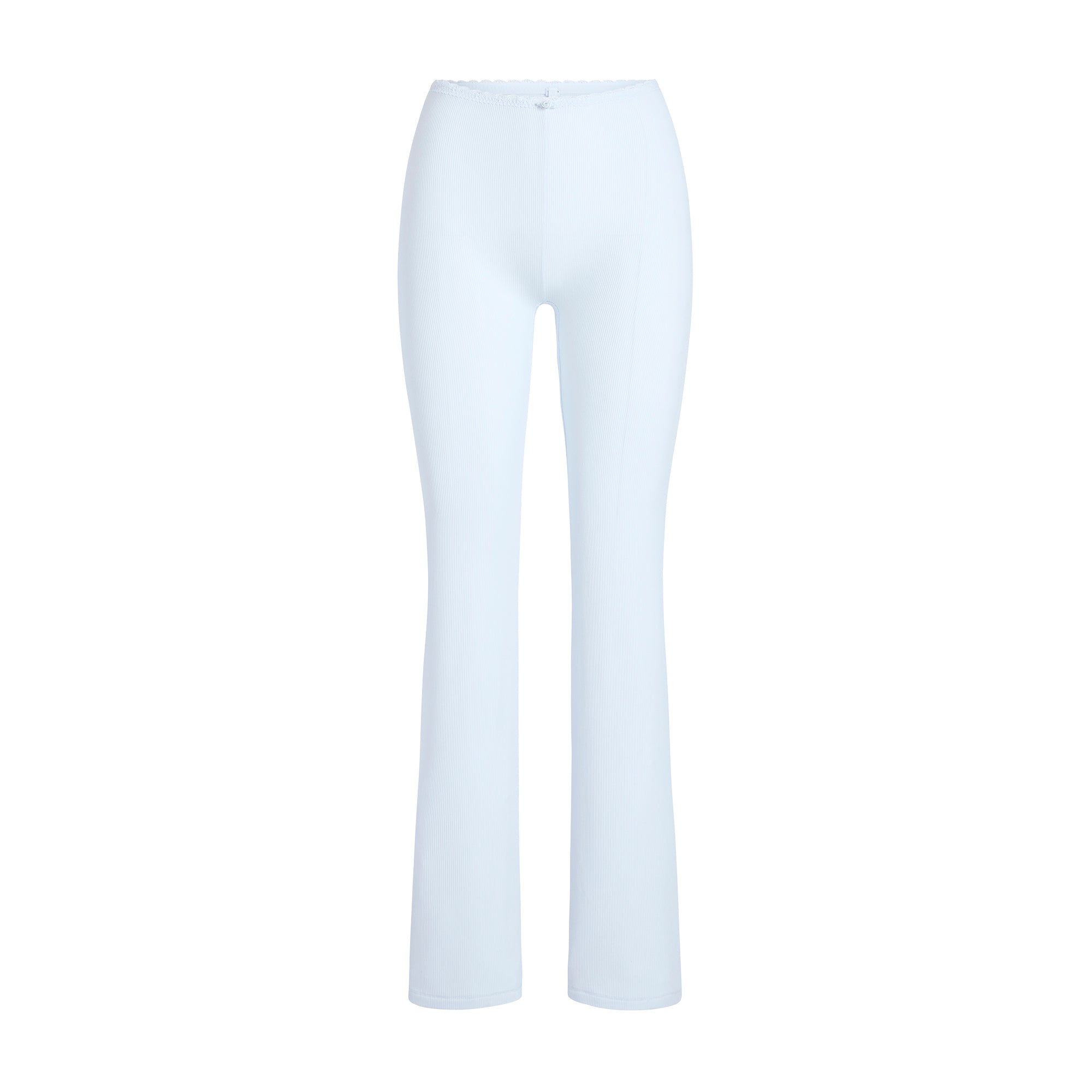 Forever is more comfortable in this lounge pant. Made with the same ribbed modal as our viral dress, this stretchy style is addictively soft and endlessly flattering. Features romantic lace trim along the smooth, elastic waist, and a sweet rosette detail at the center front. Fits true to size.