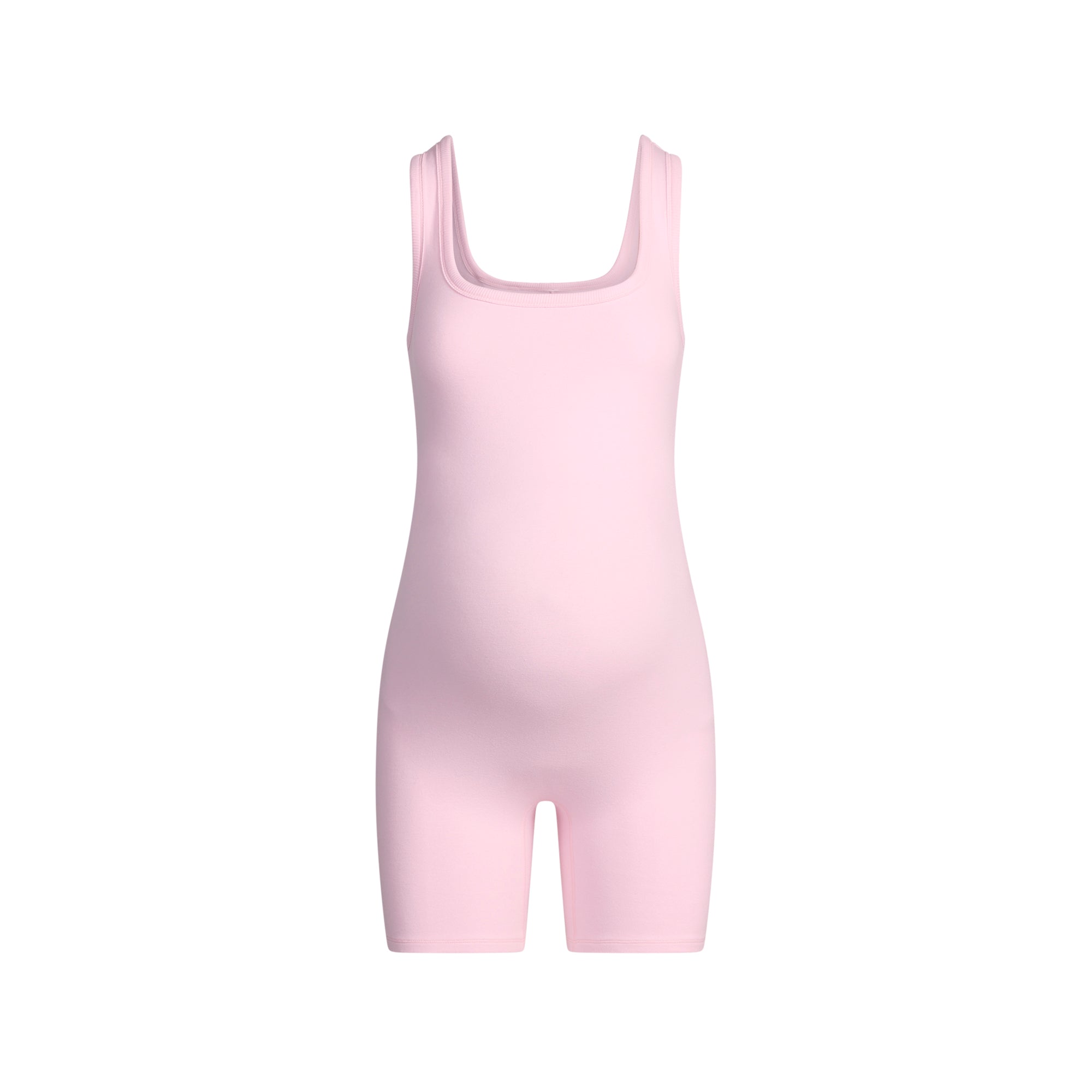The perfect pregnancy one-piece. Relax or run errands in comfort with this soft and stretchy cotton maternity onesie. Lined in power mesh for compressive support, this mid-thigh solution features added room in the waist for your growing bump. Complete with rib detailing at the scoop neckline and a 100% cotton gusset.