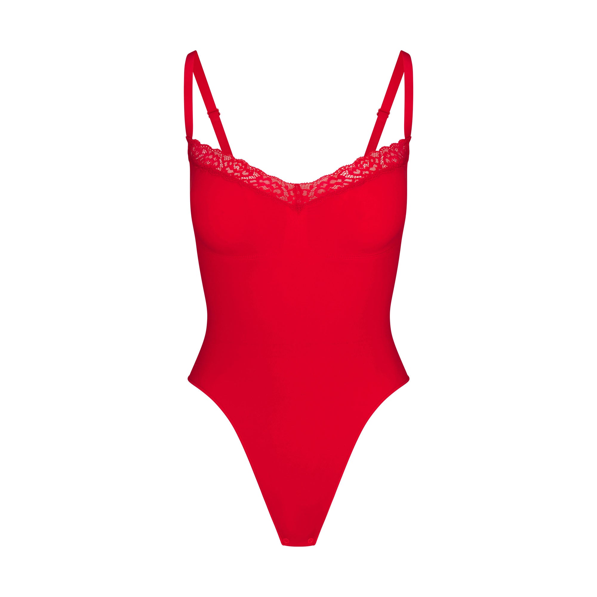 SEAMLESS SCULPT LACE THONG BODYSUIT | CAYENNE