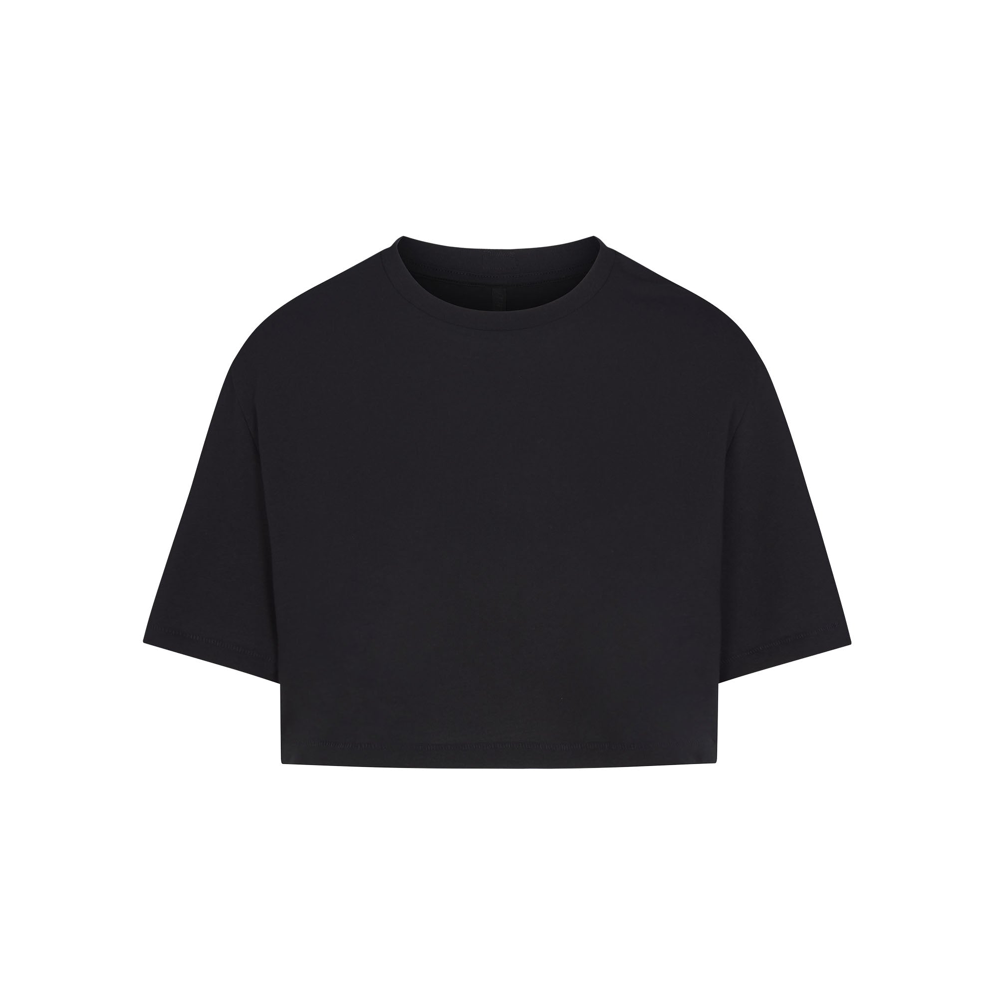 The crop top your closet needs. Made for all-day, everyday comfort, this oversized tee is super soft and breathable. Features short sleeves with a dropped shoulder and a ribbed crew neck with a SKIMS logo label at the back. Hits above the natural waist and fits true to size.