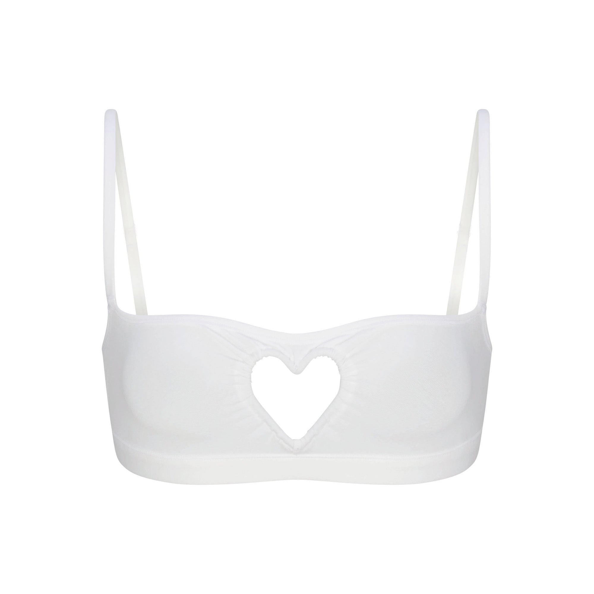 The heart wants SKIMS. With a scoop neckline and wrapped metal heart-shaped cutout, this style will instantly bring out your sweet side. Made in our signature, flattering cotton jersey, this staple features ruching details at the center, underbust elastic, and adjustable straps for a comfortable fit. Fits true to size.