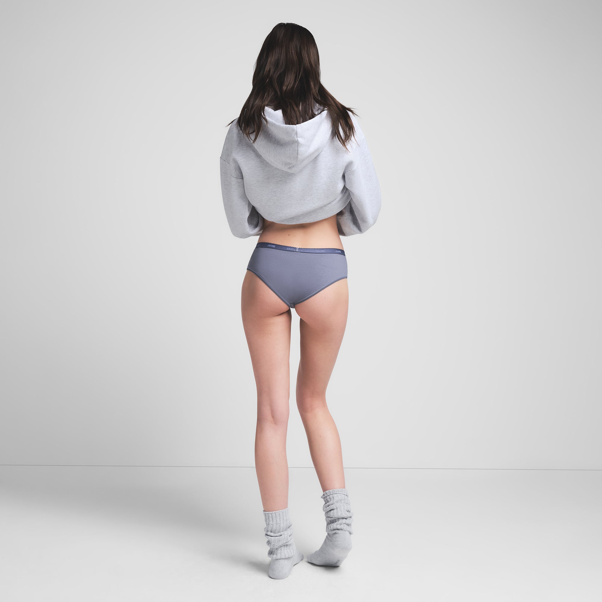 LIGHTWEIGHT COTTON LOGO PICOT HIPSTER | STEEL BLUE